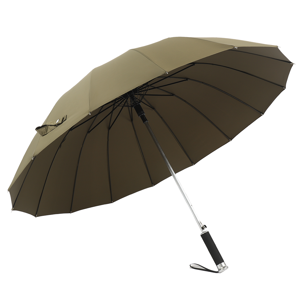 A golf umbrella is a type of large and sturdy umbrella designed primarily for use on the golf course. It is characterized by its oversized canopy, typically measuring around 60 to 68 inches (152 to 173 cm) in diameter, which provides ample coverage and protection from rain and sun. The large canopy is designed to shield both the golfer and their golf bag or equipment from the elements.