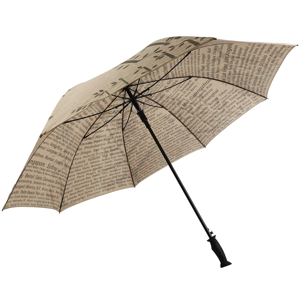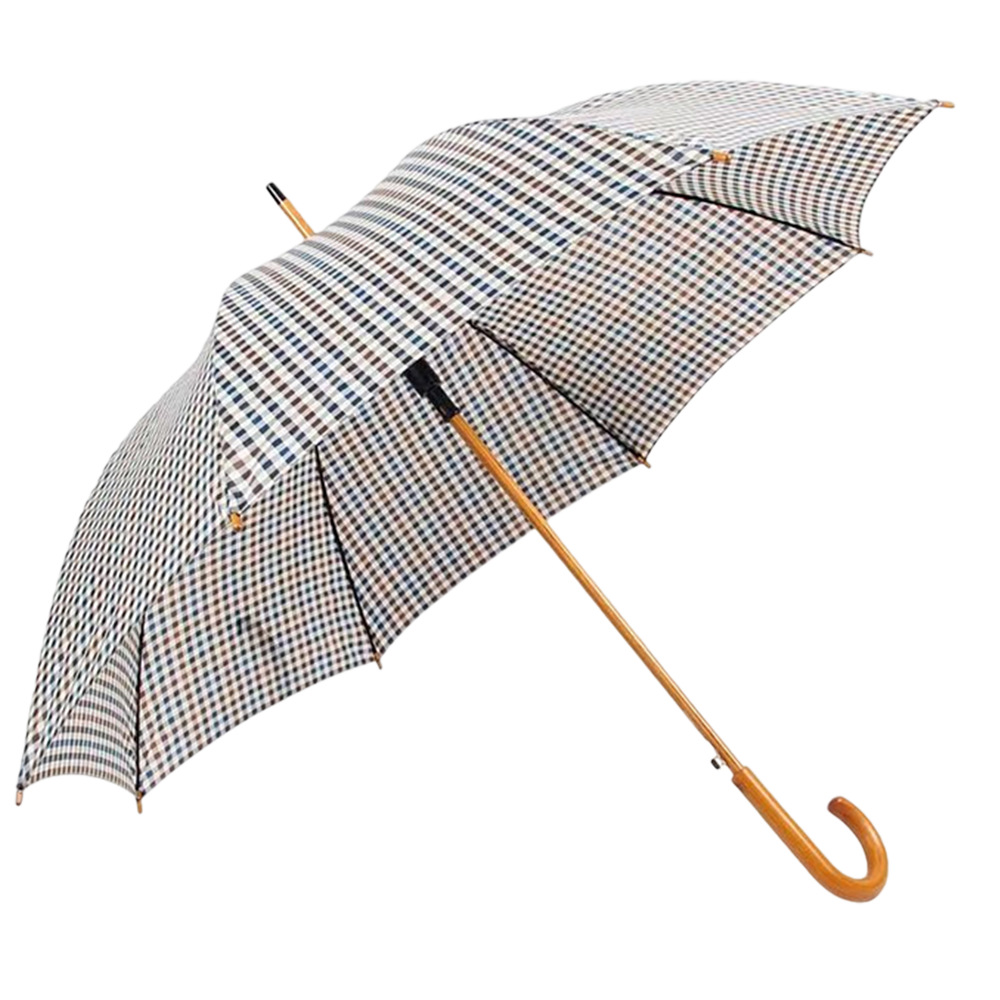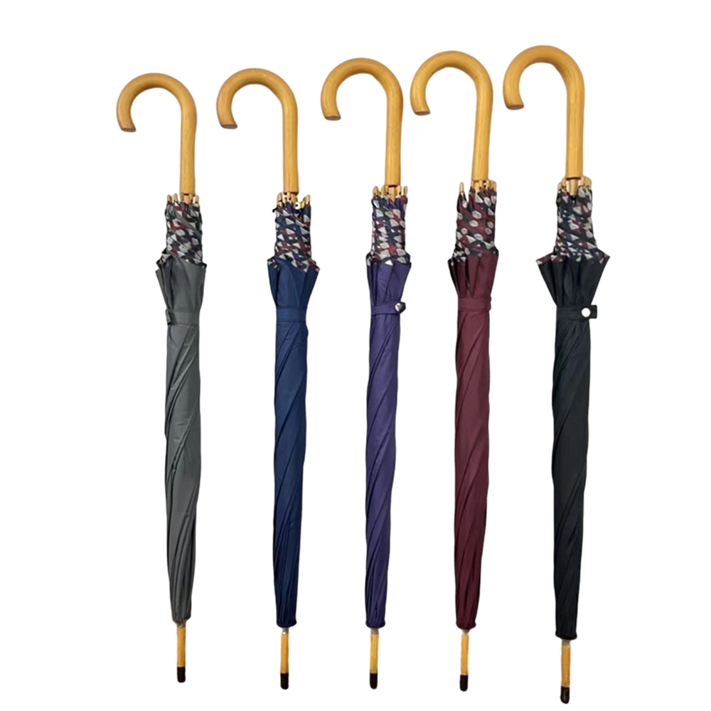 A stick umbrella, also known as a classic umbrella or a straight umbrella, is a type of umbrella that features a long, straight handle. This handle is often made of wood or metal and provides a sturdy grip for the user. The stick umbrella typically has a canopy made of waterproof fabric that is supported by a series of ribs or spokes.Straight-handle umbrellas are available in various sizes and styles to cater to different needs and individual tastes. They are typically better suited for walking, formal occasions, or for those who wish to maintain a timeless and elegant appearance.